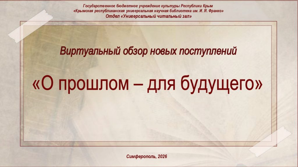 Виртуальный обзор новых поступлений «О прошлом – для буд...