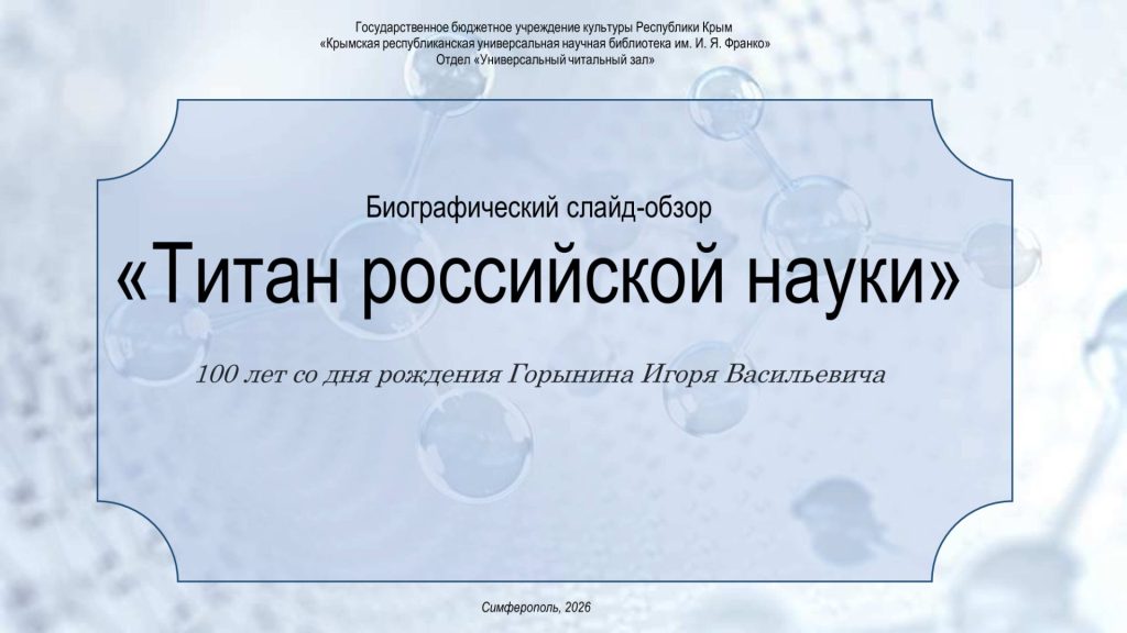 Биографический слайд-обзор «Титан российской науки»...