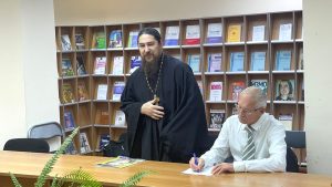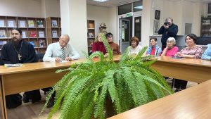 В мероприятии принял участие клирик храма Всех Святых, протоиерей, известный православный публицист Дмитрий Шишкин, члены православного клуба «Вера. Православие. Книга», читатели и гости библиотеки.