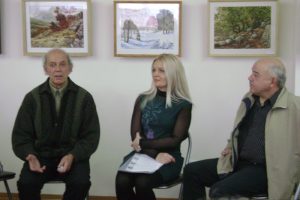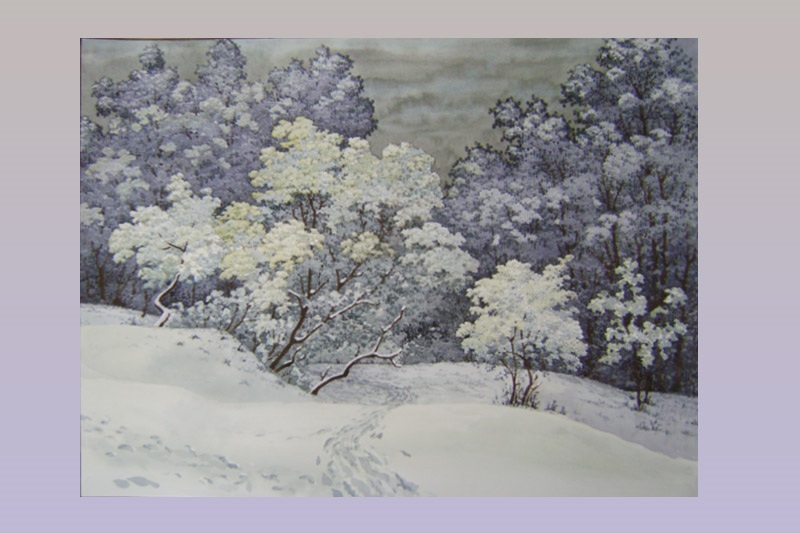 «На этой выставке преобладает новогоднее настроение, – поделился со зрителями взволнованный художник. – Красота зимней природы особенная. Снег, талая вода, иней на ветвях, цвета и оттенки белого повсюду разные. В городе один белый, в лесу – другой, в горах – вообще третий. В акварельной живописи небезосновательно считается высшим пилотажем изображение белого снега. И приглядитесь – он повсюду разный! И чуть голубоватый, и серо-синий, и даже золотисто-розовый».