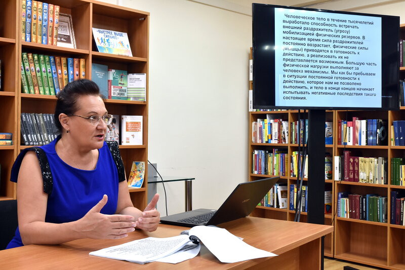 Врач Центра медицинской профилактики Вера Павлова предложила присутствующим к просмотру презентацию и рассказала, какое большое значение имеет двигательная активность человека и как это влияет на его здоровье.