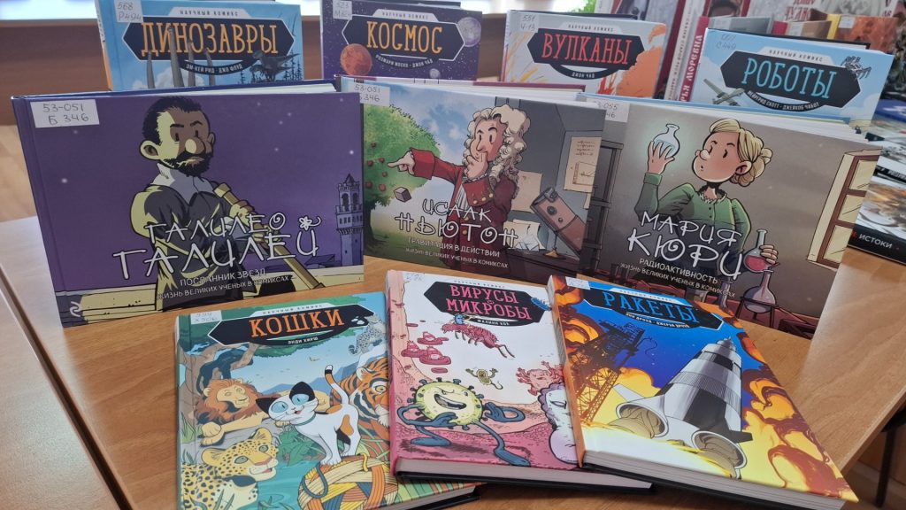 В ходе встречи ребят ожидало много открытий. Они узнали, что научные комиксы – это увлекательный и доступный способ передачи знаний через интересные и захватывающие сюжеты, которые сочетают в себе картинки и тексты, что делает процесс чтения и освоения новых знаний интересным и запоминающимся. Для всех присутствующих была организована книжная выставка, включающая научные комиксы из фондов библиотеки.