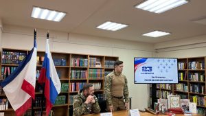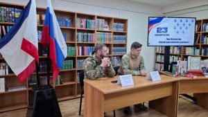 День защитника Отечества как символ народной доблести и воинского долга сегодня приобретает особую актуальность и отмечается как дань уважения мужеству и героизму военнослужащих всех поколений. Почётными гостями мероприятия стали герои-ветераны СВО: доброволец, заместитель командира казачьего штурмового батальона «Таврида» Дмитрий Воронин и доброволец, гвардии лейтенант ударно-штурмового отряда «Шторм-1», 1-й Гвардейской Славянской бригады Донецкого Корпуса Алексей Губин. Героические защитники рассказали о своём боевом опыте, поделились мыслями и личными впечатлениями, планами на будущее. Дмитрий Воронин прочёл авторские стихотворения, связанные с темой встречи. Поэтические сочинения молодых крымских поэтесс о любви и защите Родины, о воинах, героизме и ратном подвиге усилили впечатления о современных исторических событиях, их трагизме, серьёзности, героизме воинов.