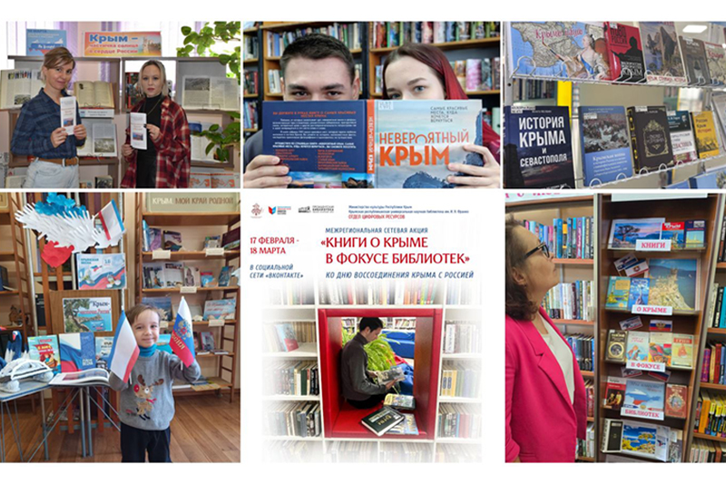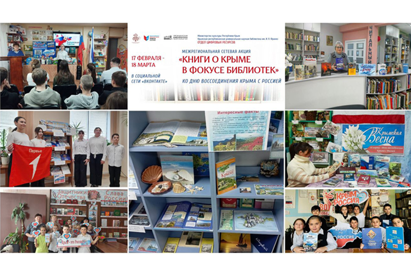 Ко Дню воссоединения Крыма с Россией специалисты отдела цифровых ресурсов организовали межрегиональную сетевую акцию, которая проходила в период с 17 февраля по 18 марта 2025 года в социальной сети «ВКонтакте». Цель акции – привлечение внимания читателей к литературе, посвященной истории, культуре и современному облику Республики Крым.