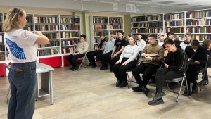 В отделе городского абонемента в рамках празднования Дня космонавтики и Недели космоса для учащихся специальной общеобразовательной школы для детей с ограниченными возможностями здоровья «Надежда» г. Симферополя прошла Всероссийская интеллектуальная игра Р.И.С.К. «Космос». Её провела руководитель штаба Всероссийского общественного движения «Волонтёры Победы» Ульяна Плотникова.