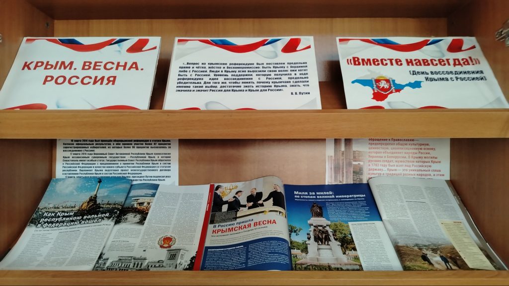 Из представленных периодических изданий посетители узнают, как исторически связаны судьбы Крыма и России, вспомнят события Крымской весны 2014 года, а также ознакомятся с достижениями нашего полуострова после воссоединения с Российской Федерацией.