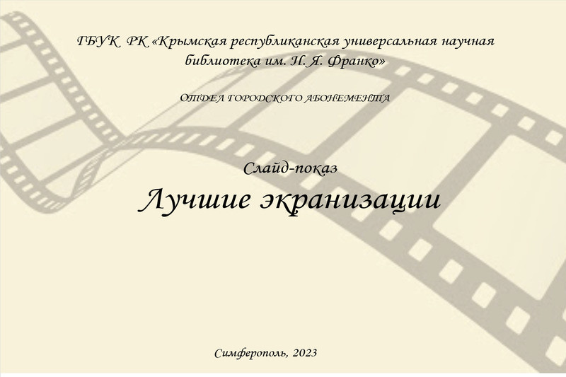 Ко Дню российского кино специалисты отдела городского абонемента подготовили  слайд-показ «Лучшие экранизации».
