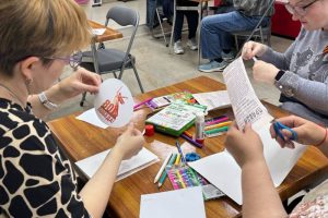 Под руководством педагога дополнительного образования МБ УДО «Радуга» Нины Кораблевой посетители Центра социальной адаптации граждан пожилого возраста и инвалидов города Симферополя с энтузиазмом и творчески создавали открытки для участников СВО и своих близких. Гости встречи отразили в ярких композициях крымское тепло и веру в победу, написав искренние пожелания адресатам.
