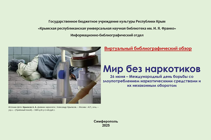 Виртуальный библиографический обзор, подготовленный специалистами информационно-библиографического отдела, посвящен Международному дню борьбы с наркотическими веществами и их незаконным оборотом, который отмечается 26 июня. Дата была установлена в 1987 году по решению Генеральной Ассамблеи ООН.