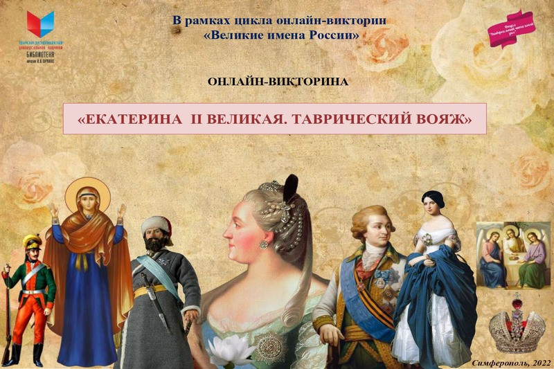 В рамках цикла онлайн-викторин «Великие имена России» специалисты отдела «Универсальный читальный зал» подготовили интеллектуальную игру, посвященную правлению русской императрицы Екатерины Великой.