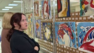 Живописные работы дополнили витрины с книжной графикой мастера. Представленные рисунки художницы в книжных изданиях выполнены на высоком профессиональном уровне, с учетом всех тонкостей книжного и полиграфического искусства.