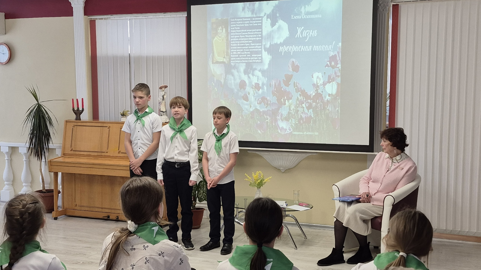 Учащиеся школ стали гостями увлекательной встречи с известным крымским автором. Писательница рассказала о своей книге, продекламировала собственные стихи и поддержала живую беседу с ребятами.