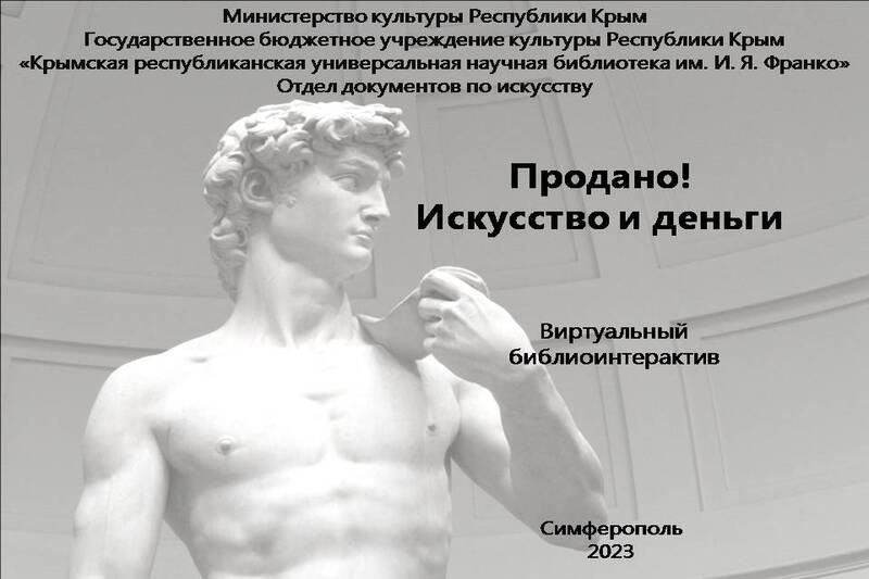 Отдел документов по искусству представляет вниманию пользователей виртуальный библиоинтерактив «Продано! Искусство и деньги».
