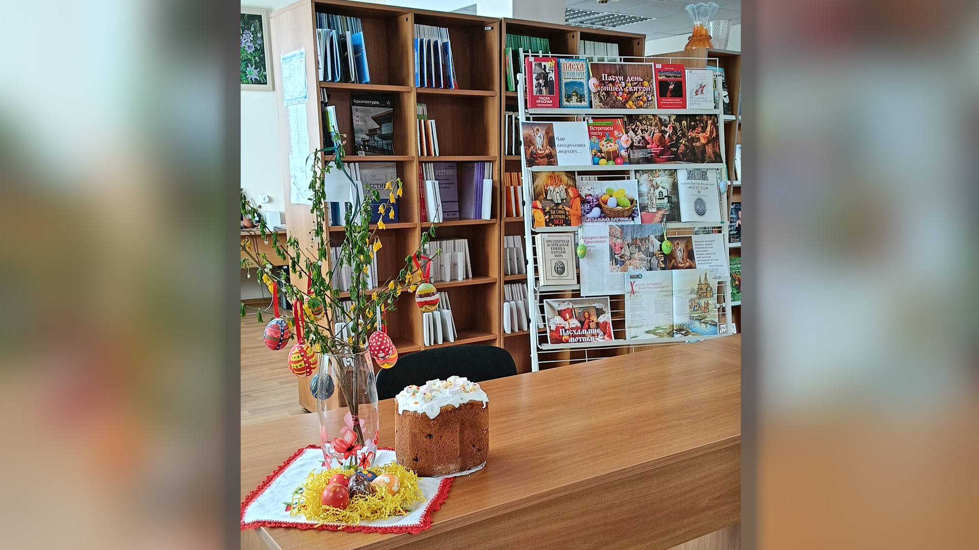 Информационным дополнением духовного часа стала литературно-иллюстративная выставка. В экспозицию вошли издания, раскрывающие духовную и историческую суть этого величайшего праздника, главные символы, обряды и народные традиции, а также его значение для верующего человека. Украсили выставку пасхальные атрибуты – крашеные яйца, поделки детей на пасхальную тематику.