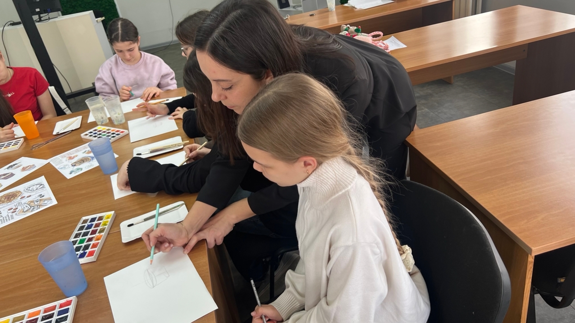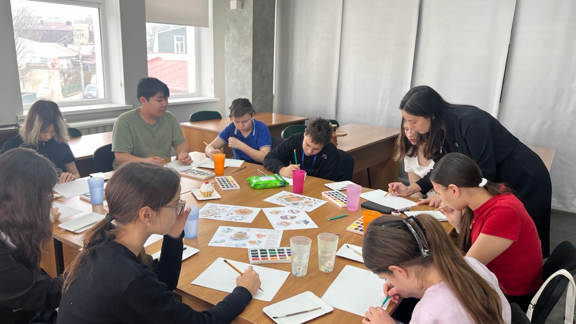 Под руководством опытного педагога ребята учились передавать фактуру крема, воздушность бисквита и блеск глазури с помощью красок.