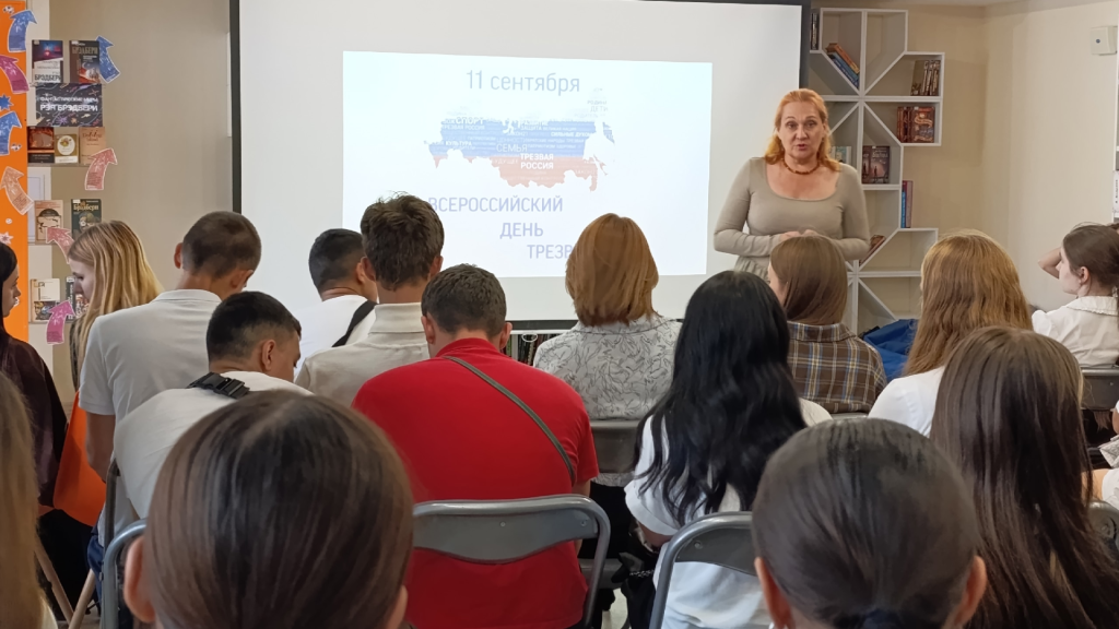 В отделе городского абонемента для молодежи провели час здоровья, приуроченный к Всероссийскому дню трезвости, который отмечается 11 сентября. Студентам был продемонстрирован информационный ролик, раскрывающий ключевые аспекты трезвости, её влияние на физическое и психическое здоровье, а также на социальную реализацию личности.
