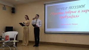 Об удивительном многогранном таланте творца, воплотившем в себе характер русского народа, рассказали студенты Крымского университета культуры, искусств и туризма, погрузив собравшихся в удивительный мир признанного гения русской и мировой литературы. Ярким дополнением вечера стала музыка композитора Г. Свиридова и произведения на стихи А. С. Пушкина в исполнении преподавателей Симферопольской детской музыкальной школы № 2 им. Алемдара Караманова, мультимедийная презентация «Но жив талант, бессмертен гений», и книжная экспозиция «Пушкин. Жизнь и судьба», где представлены различные издания выдающегося автора и труды известных литературоведов.