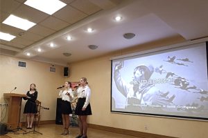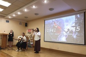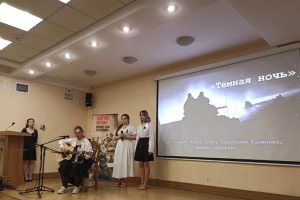 В исполнении студентов под сопровождение гитары прозвучали песни военных лет: «Катюша», «Журавли», «Тёмная ночь», «Одуванчики», а также стихи Муссы Джалиля  и Георгия Рублева.
