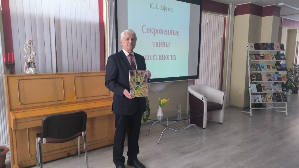 Во Всемирный день писателя состоялась встреча с Константином Ефетовым — доктором биологических наук, профессором, академиком Российской академии естествознания и Крымской академии наук, председателем Крымского отделения Русского энтомологического общества, почётным работником науки и высоких технологий Российской Федерации, членом Союза писателей России, автором более 100 поэтических сборников и книг прозы, многочисленных монографий и учебников.