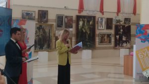 Заместитель министра внутренней политики, информации и связи Республики Крым Анастасия Форманчук зачитала приветственный адрес от имени министра внутренней политики, информации и связи Республики Крым Альберта Куршутова, подчеркнув, что современная литература неразрывно связана с героической историей нашей Родины и формирует у нового поколения чувство сопричастности к историческому наследию.
