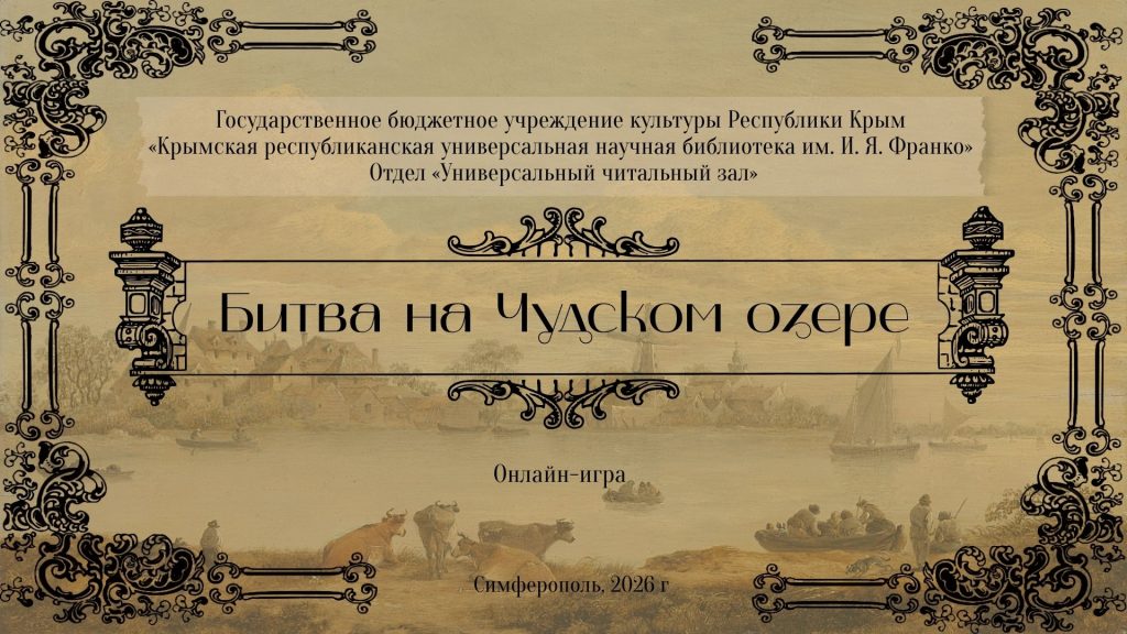 Специалисты отдела «Универсальный читальный зал» приглашают пользователей принять участие в онлайн-игре «Битва на Чудском озере» и проверить свои знания об одном из самых значимых сражений Средневековья. Участникам предстоит ответить на вопросы, связанные с историей битвы, личностью Александра Невского и особенностями эпохи.