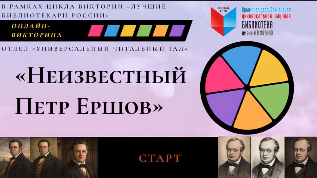 Специалисты отдела «Универсальный читальный зал» предлагают пользователям библиотеки принять участие в онлайн-викторине «Неизвестный Пётр Ершов», посвящённой жизни и творчеству выдающегося русского писателя XIX века.