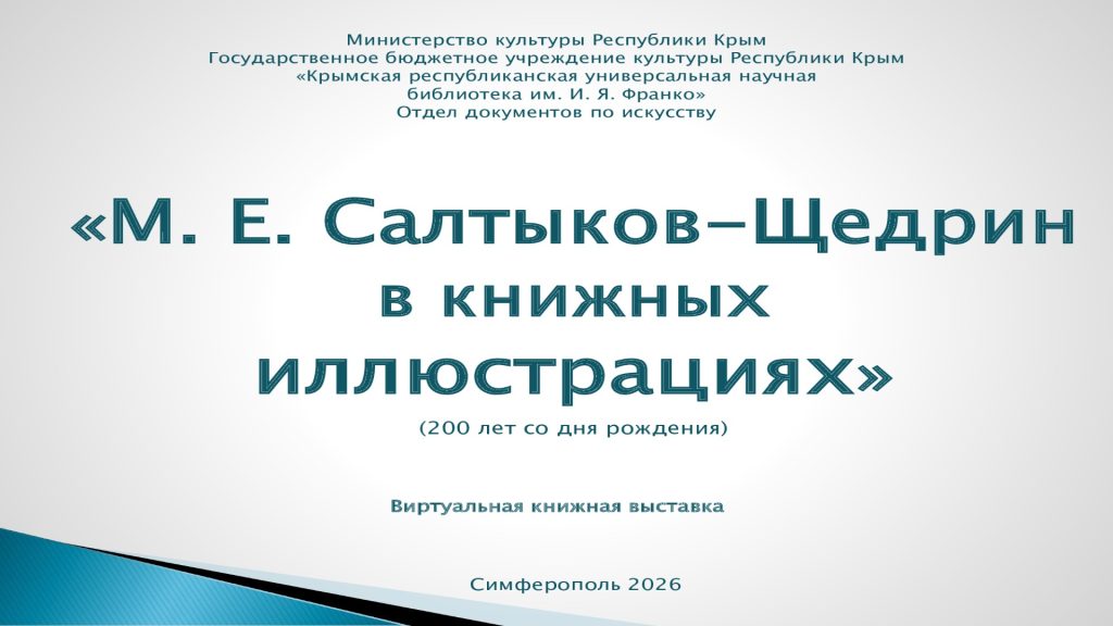 27 января 2026 года исполняется 200 лет со дня рождения Михаила Евграфовича Салтыкова-Щедрина – русского писателя, одного из наиболее известных сатириков XIX века, журналиста, государственного деятеля. К этому событию специалисты отдела документов по искусству подготовили виртуальную книжную выставку, посвященную художникам-иллюстраторам его произведений.