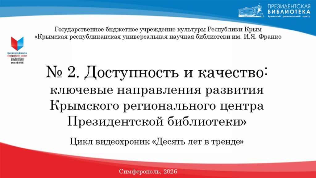 В 2026 году Крымскому региональному центру Президентской библиотеки исполняется 10 лет. Специалисты отдела цифровых ресурсов подготовили цикл виртуальных репортажей «Десять лет в тренде».