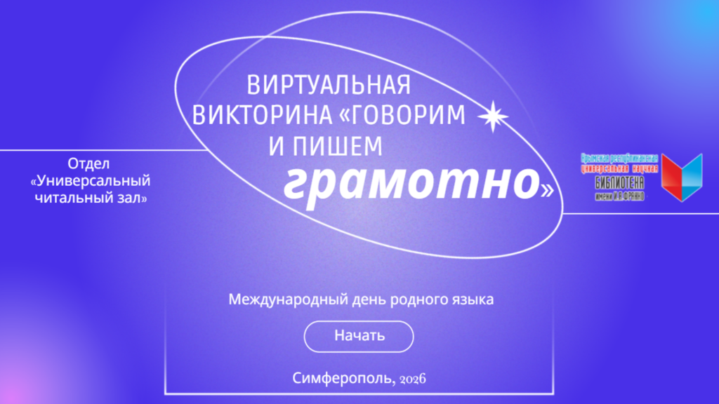 Специалисты отдела «Универсальный читальный зал» подготовили виртуальную викторину «Говорим и пишем правильно», приуроченную к Международному дню родного языка.